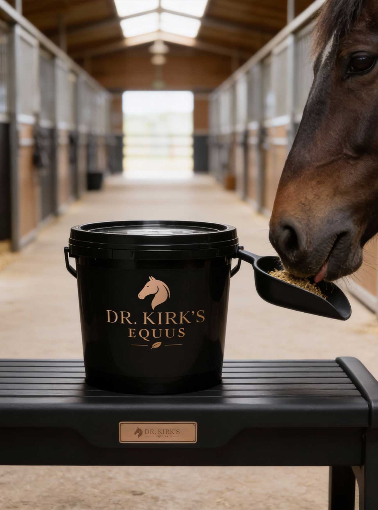 Mix with forage-based feed (e.g., chaff, soaked cubes, beet pulp). Slightly moisten feed to reduce powder loss. Feed daily at a consistent time for best results. Provide fresh, clean water at all times.